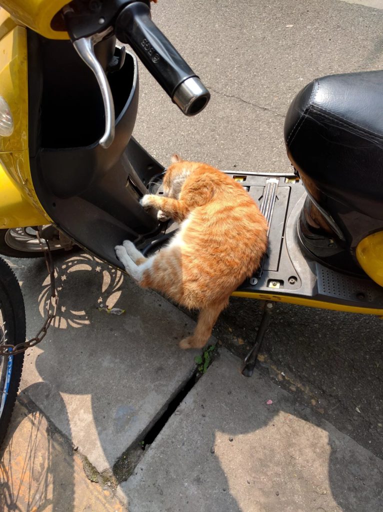 南高里曾是一片生机盎然的土地,我指的是遍地长猫。尤其是学校的停车场,在汽车顶上、电瓶车的座垫之上,常常零星散落着数只猫。Basecat 是其中之一,也是其中最受喜爱、最有气质的那一只。